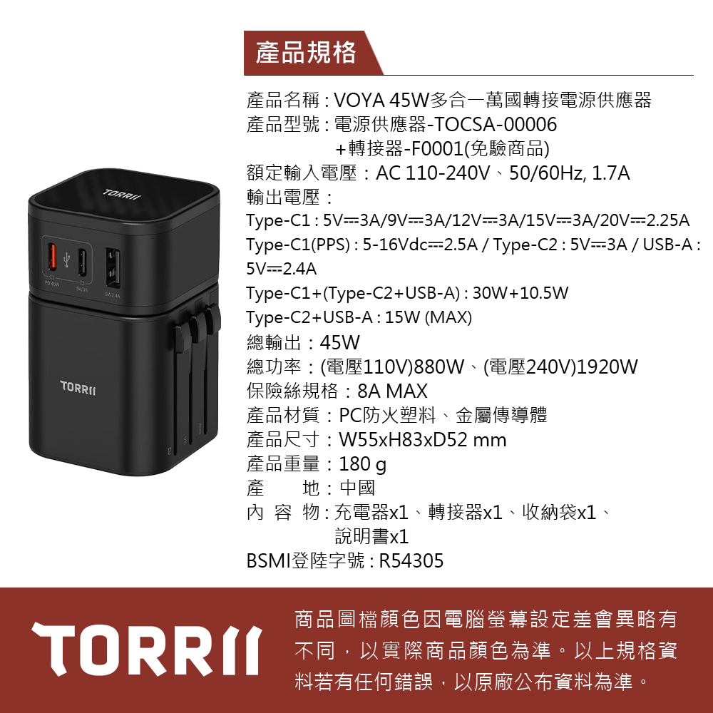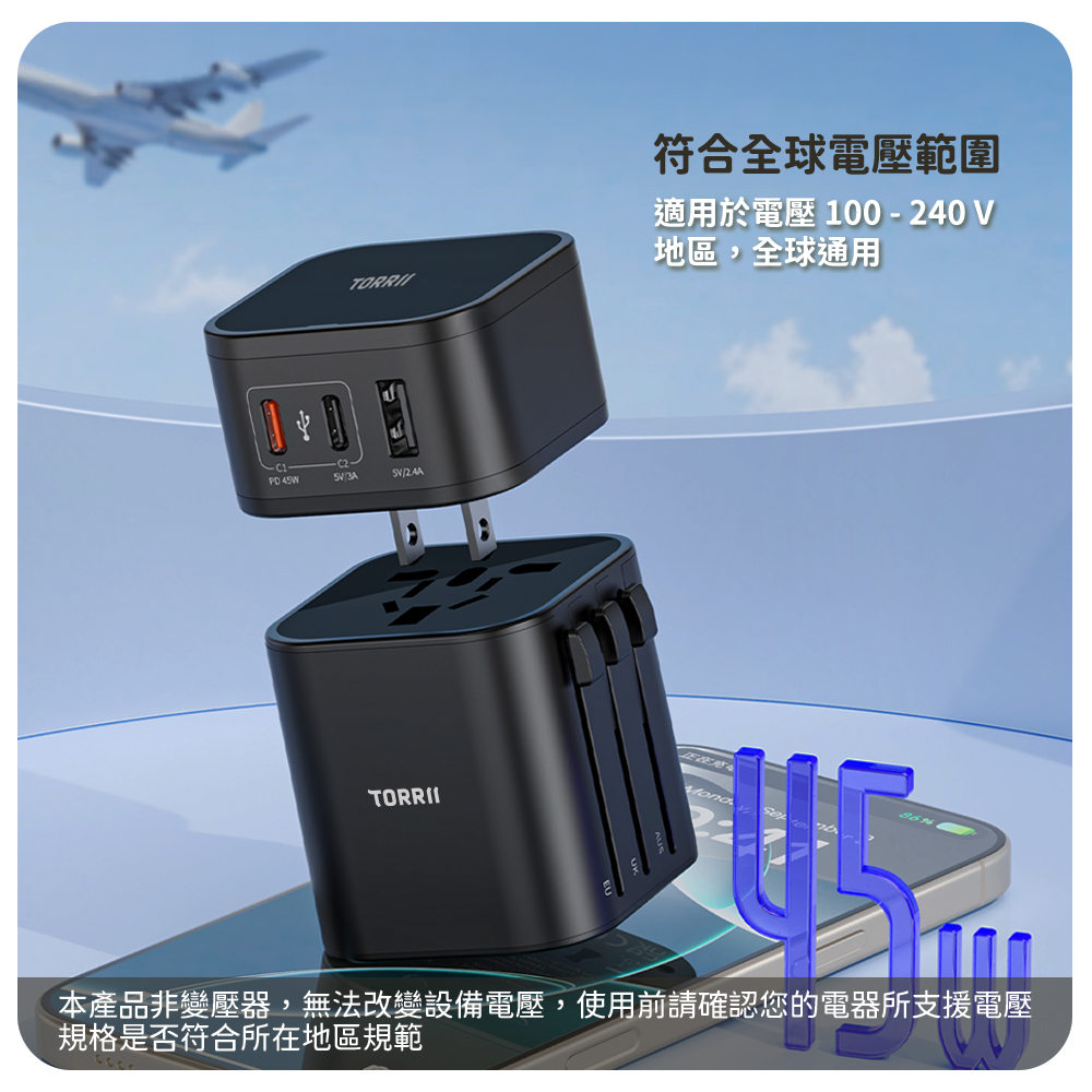 品名:VOYA 45W多合一萬國轉接電源供應器