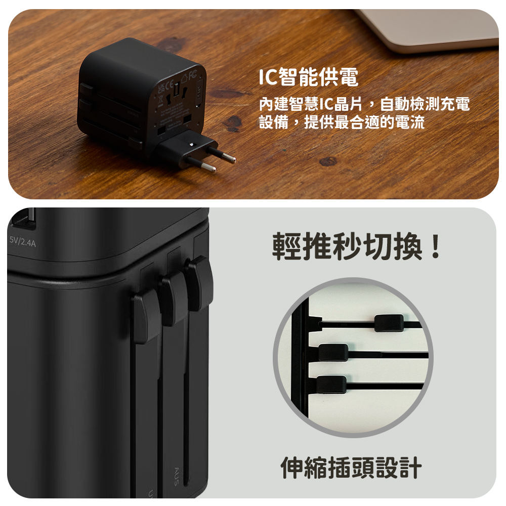 ※本產品上半部分USB插座部分支援適用110-240V電壓,下半部分轉換頭僅支援插座變換不支援變壓功能,如有使用其他電器需求,請先確認使用電器自帶支援110-240變壓再購買。
