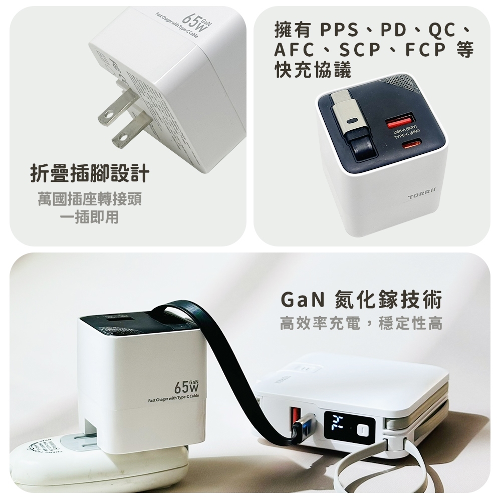 品名:CUTi 65W帶線 GaN氮化鎵快充充電器