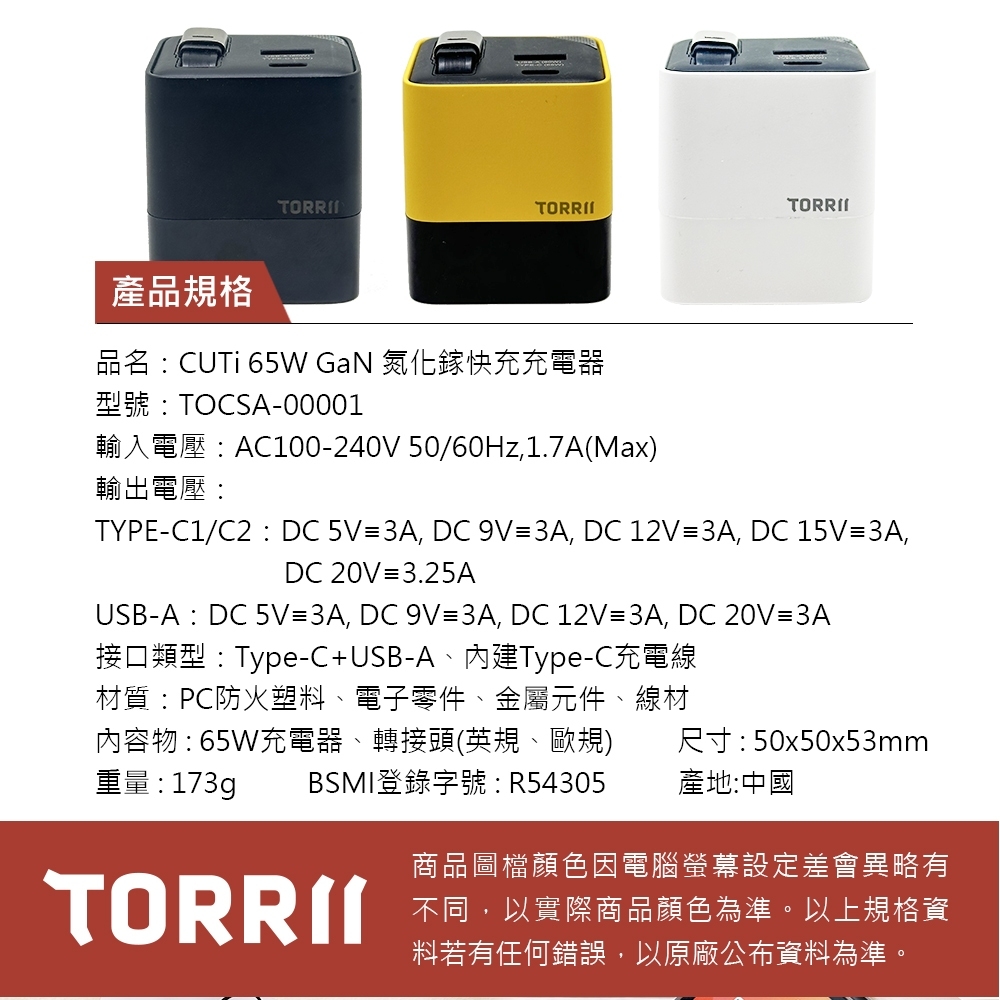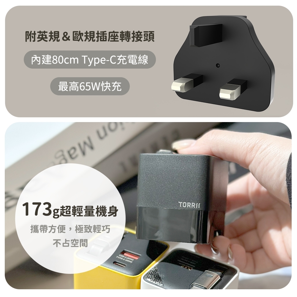 內容物:65W充電器、轉接頭(英規、歐規)