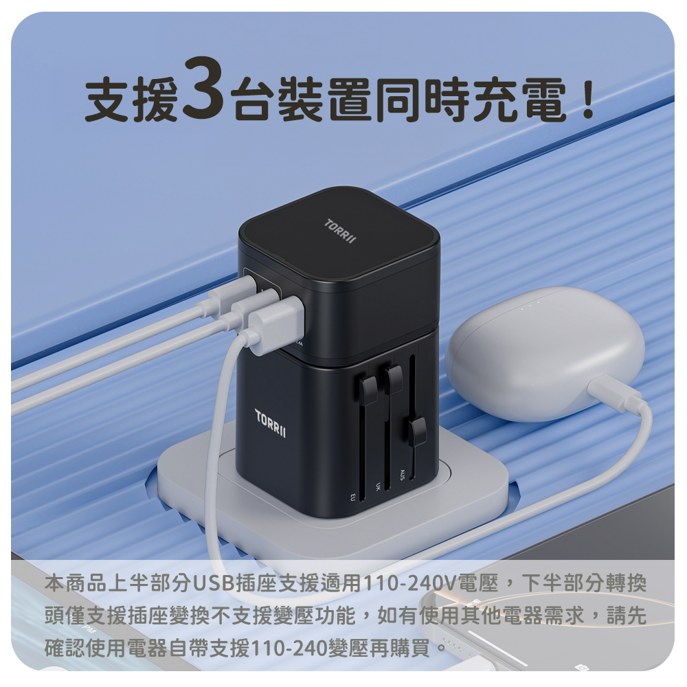 ※本產品上半部分USB插座部分支援適用110-240V電壓,下半部分轉換頭僅支援插座變換不支援變壓功能,如有使用其他電器需求,請先確認使用電器自帶支援110-240變壓再購買。